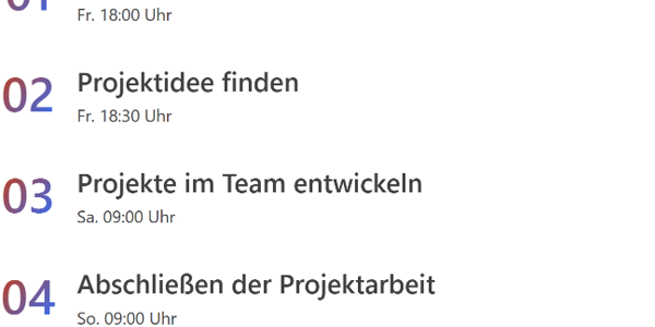 Entwicklung einer modernen Website, welche einen Überblick über die wichtigsten Informationen zum Coding Weekend ermöglicht.
